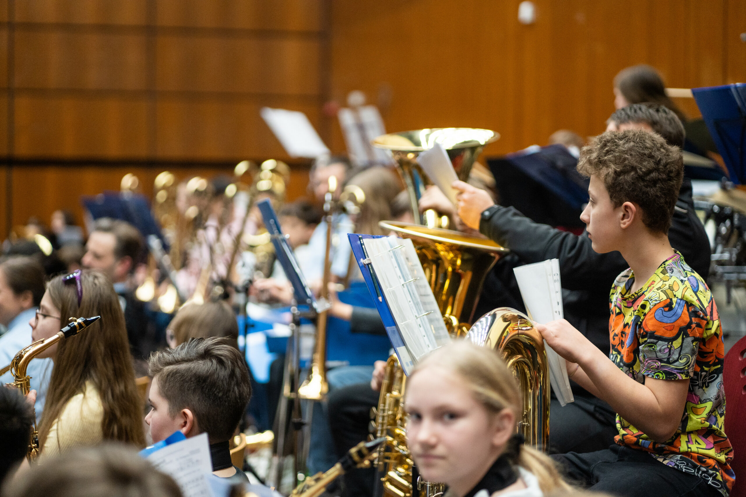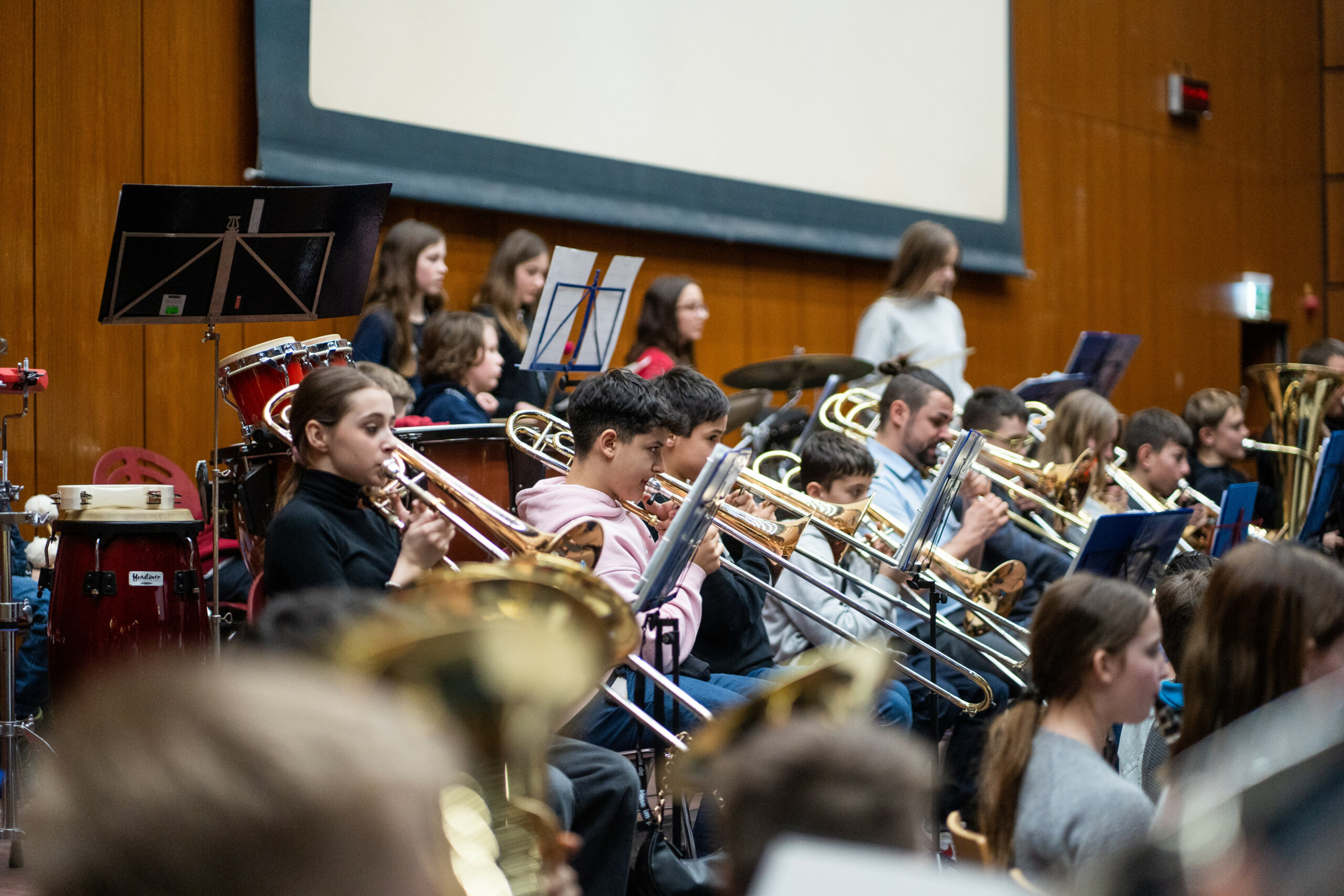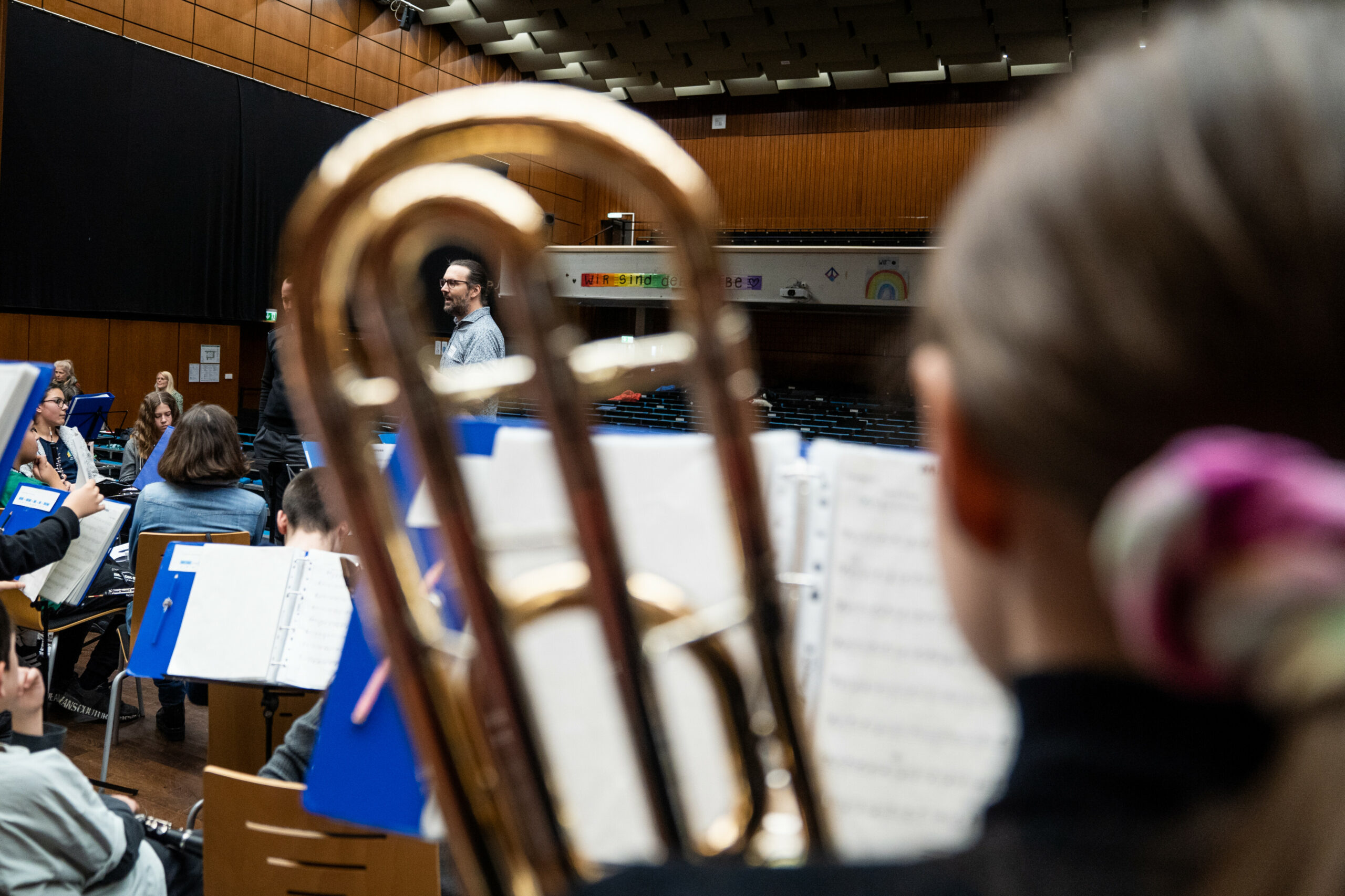 Am 14. und 15. März 2023 fanden an der Friedrich-Alexander-Universität Erlangen-Nürnberg die Bläserklassentage zusammen mit dem Heeresmusikkorps Ulm statt. Die Mittel- und Realschülerinnen und -schüler der klasse.im.puls-Bläserklassen arbeiteten zwei Tage mit den Musiker*innen des Musikkorps und stellten danach ihr Können als großes Blasorchester in einem gemeinsamen Konzert der Öffentlichkeit vor. Mit bekannten Stücken wie „Mamma Mia“, „Skyfall“ und „Amazing Grace“ begeisterten die Jungmusiker*innen die vollbesetzte Aula.
