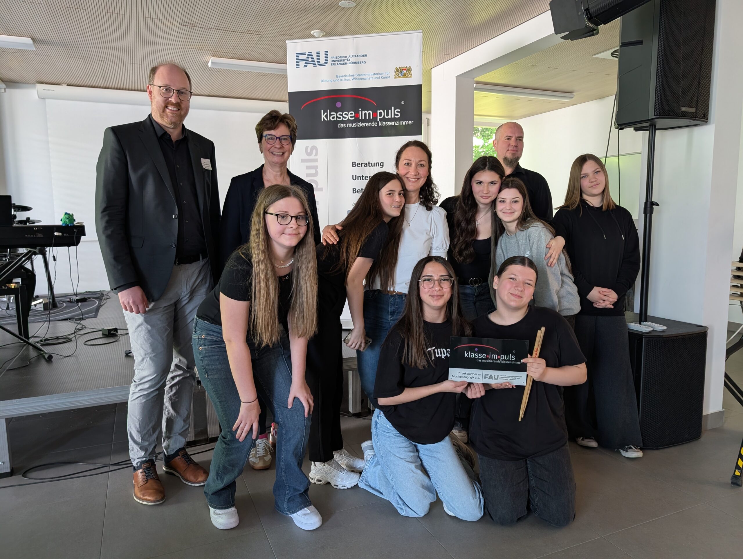 Im feierlichen Rahmen wurden am heutigen Montag in der Mittelschule an der Eduard-Spranger-Straße acht weitere Mittel- und Realschulen für ihre erfolgreiche mehrjährige Musikklassenarbeit im Rahmen des Projekts klasse.im.puls zertifiziert.